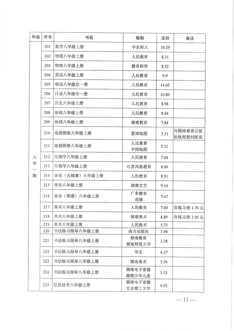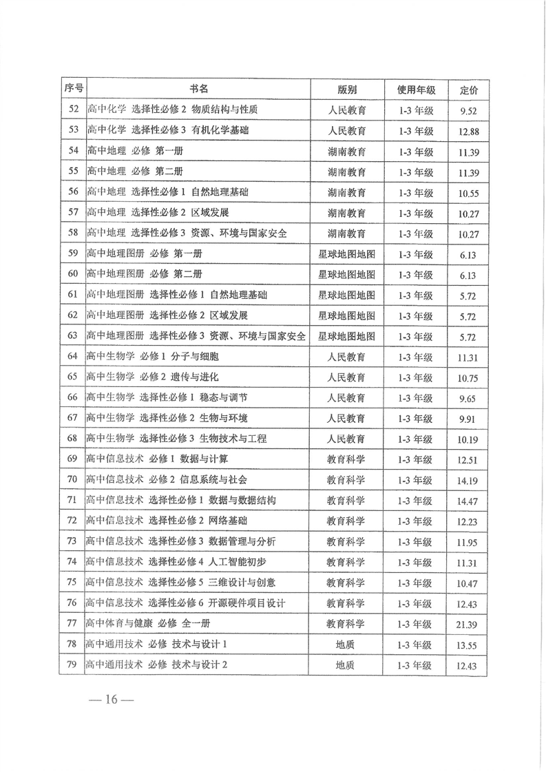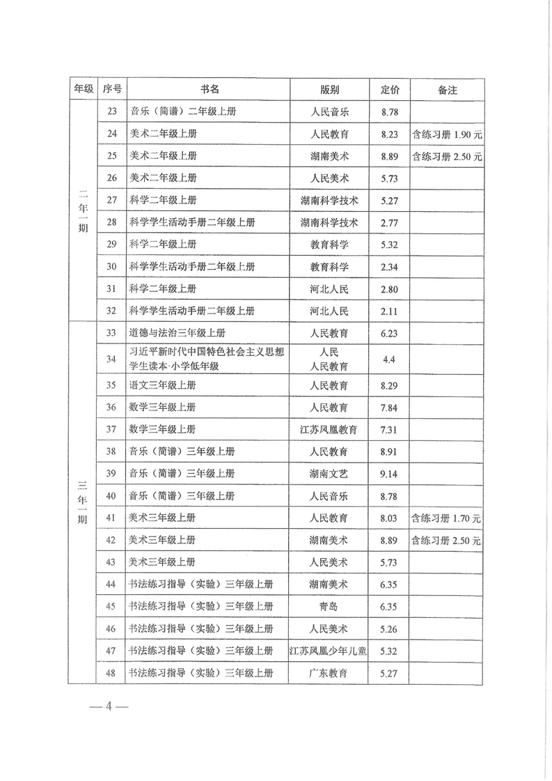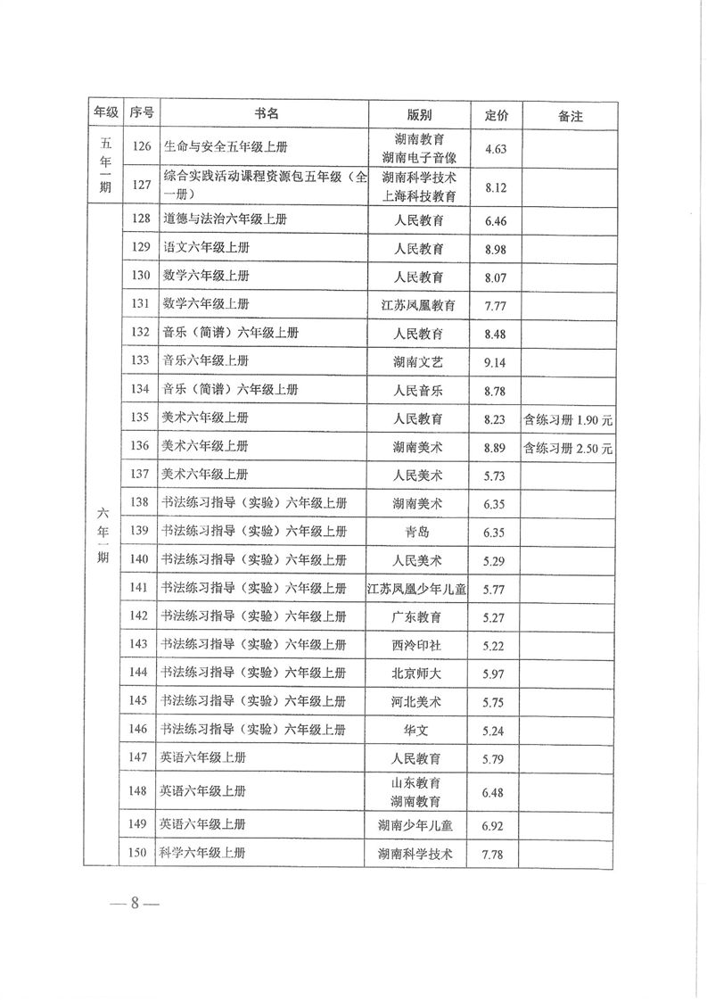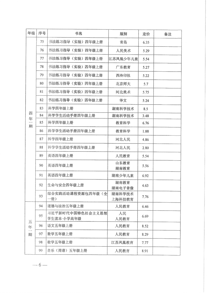湖南省发展和改革委员会 湖南省新闻出版局 关于核定2023年秋季中小学教科书价格的通知