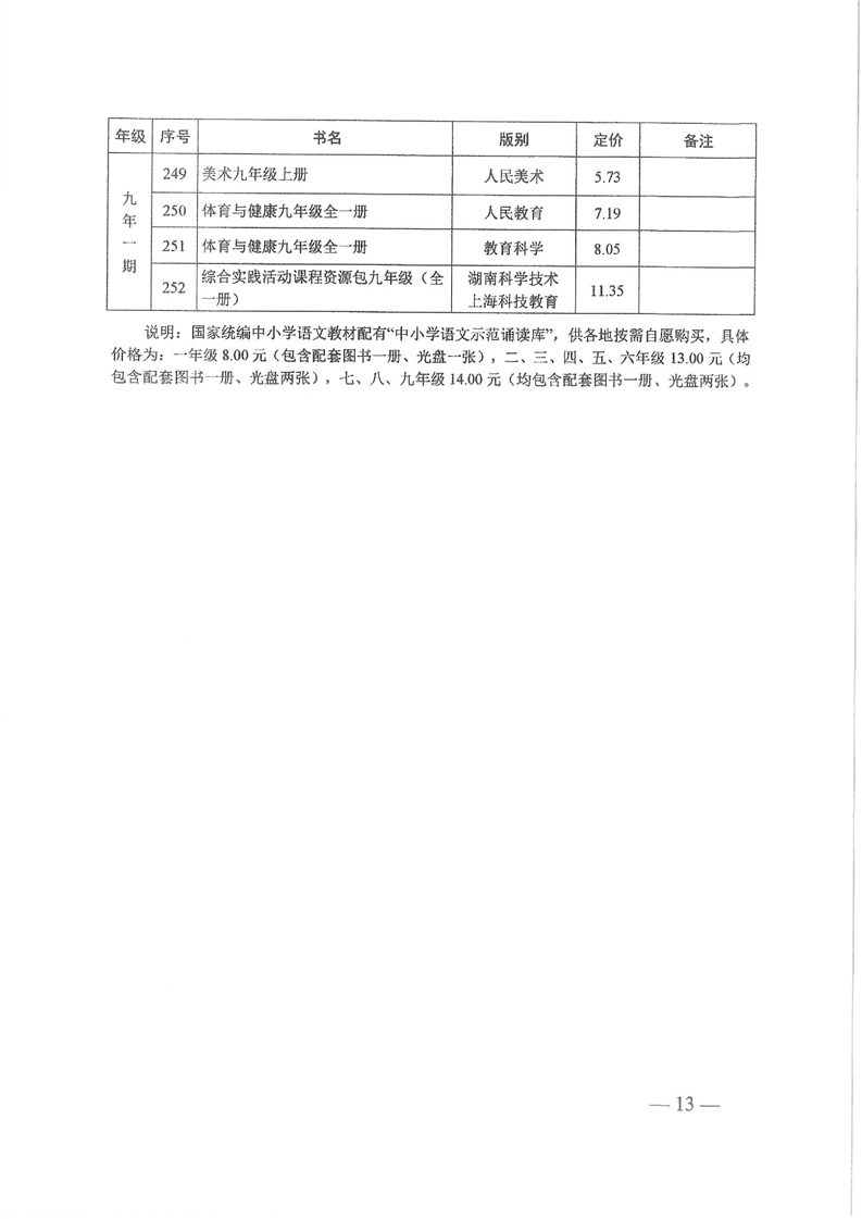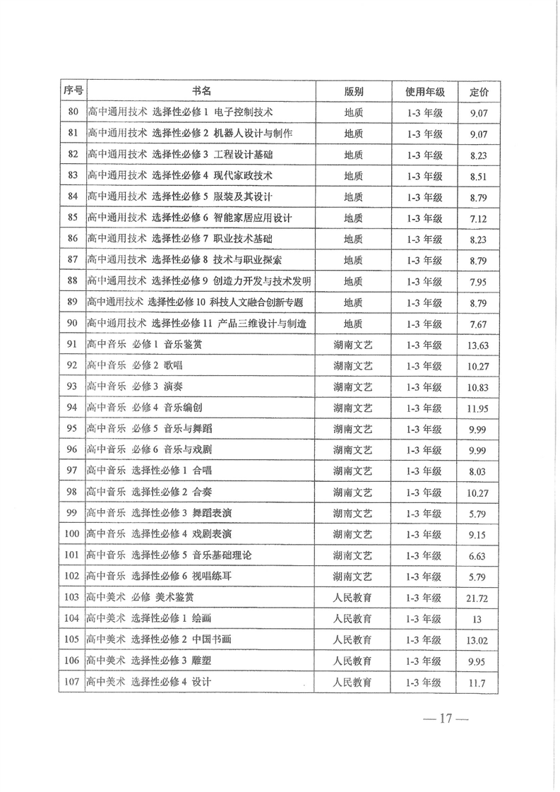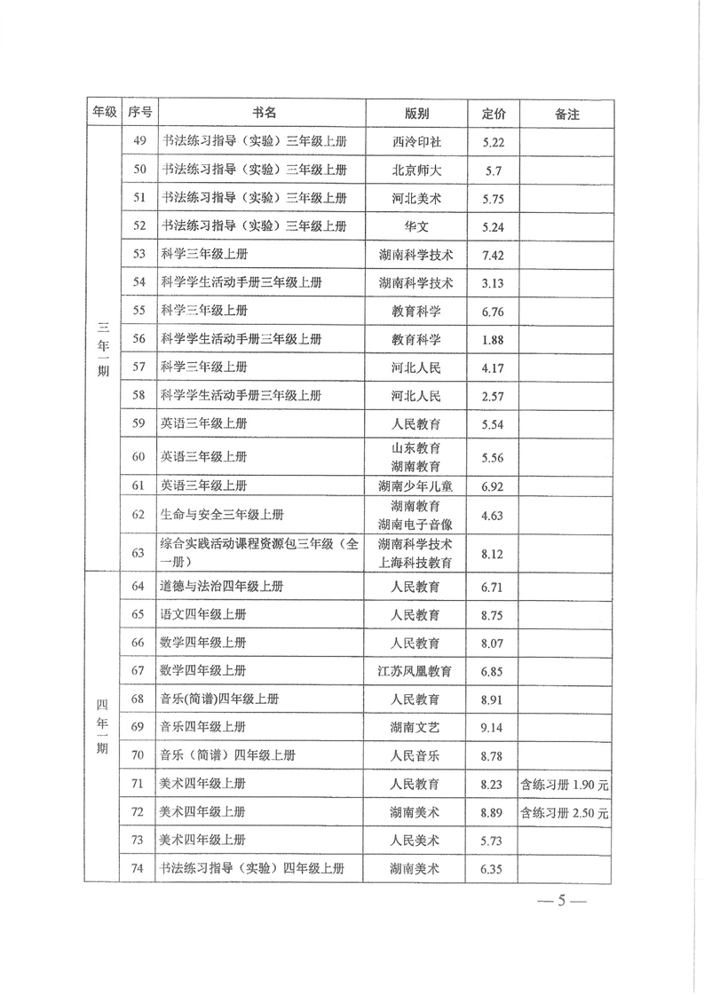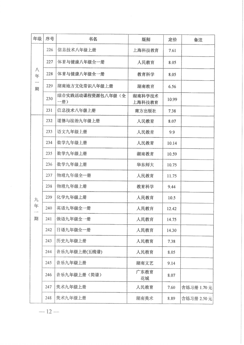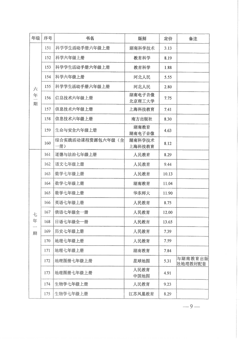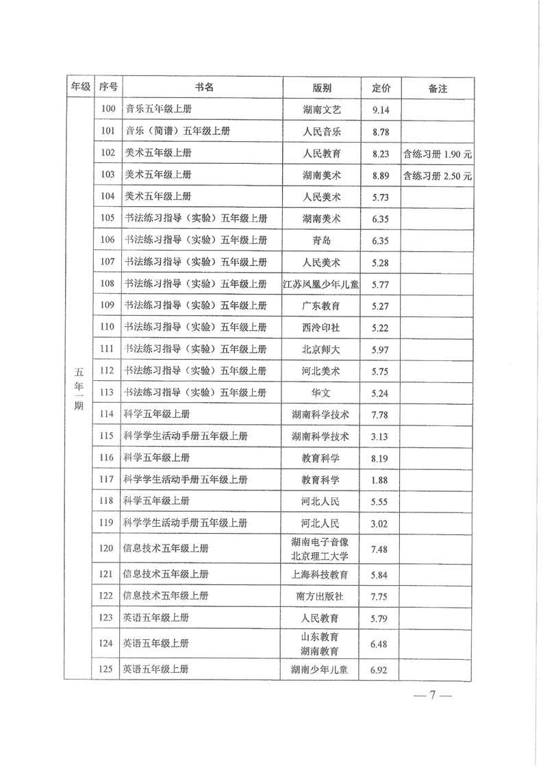 湖南省发展和改革委员会 湖南省新闻出版局 关于核定2023年秋季中小学教科书价格的通知