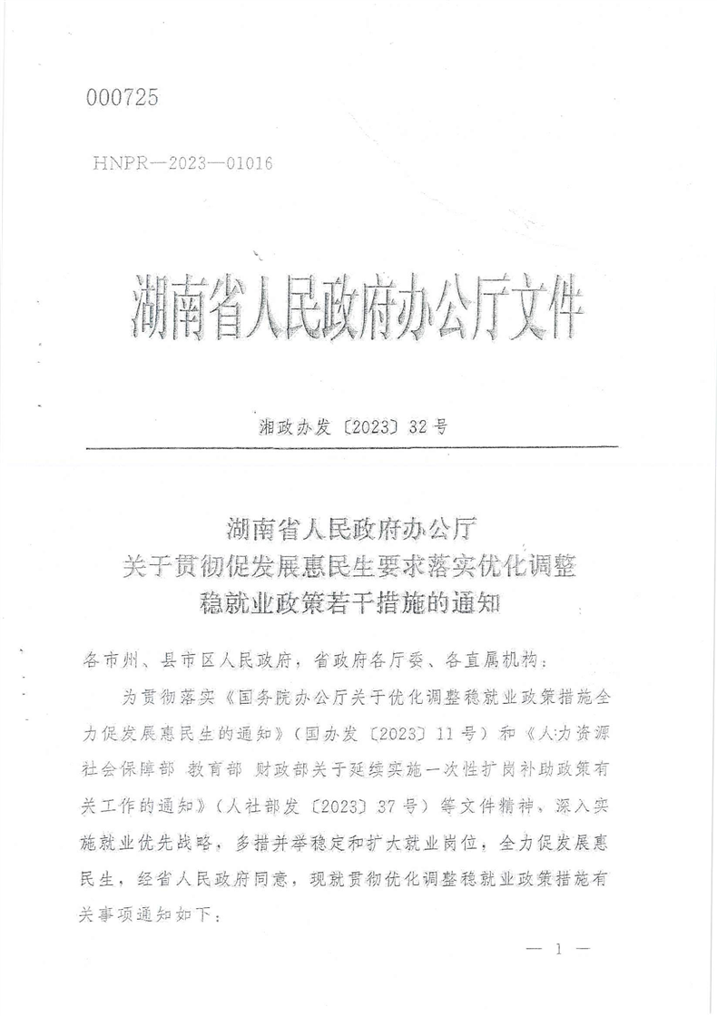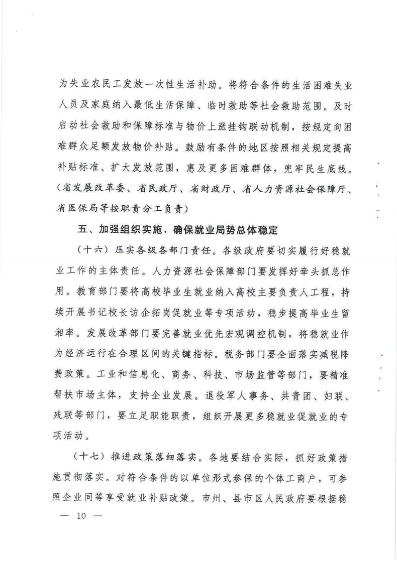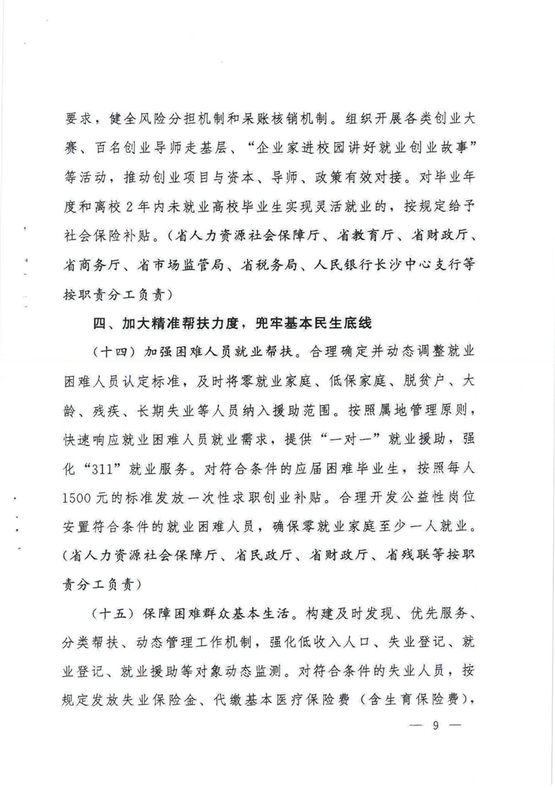 湖南省人民政府办公厅关于贯彻促发展惠民生要求落实优化调整稳就业政策若干措施的通知
