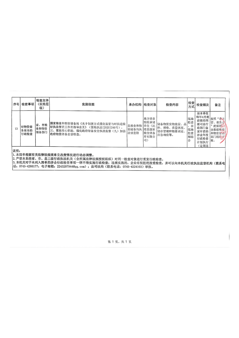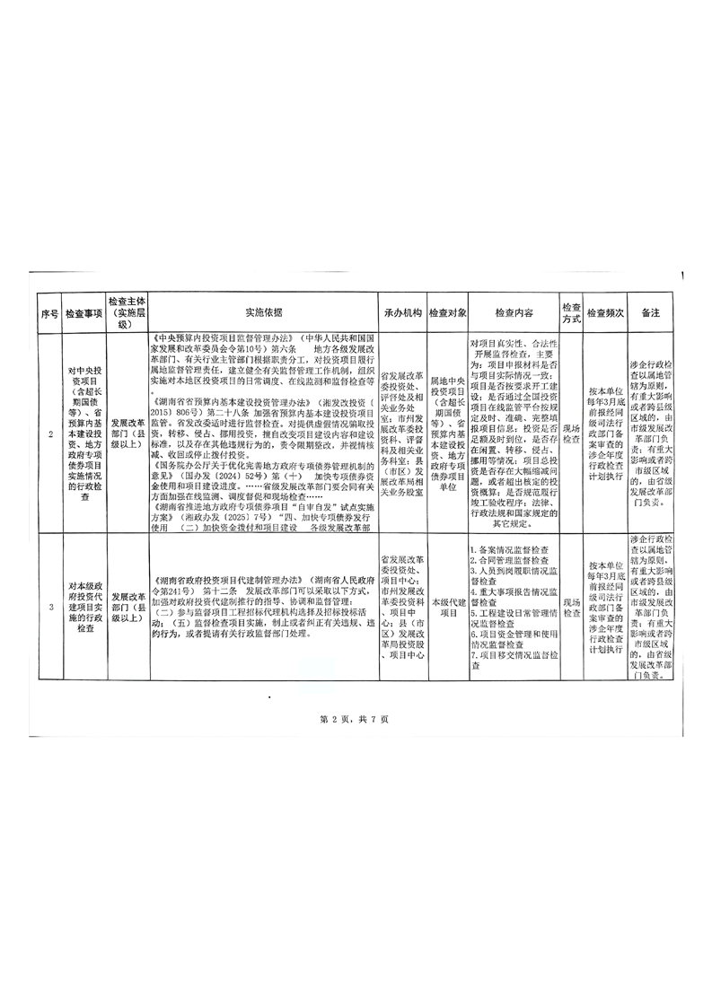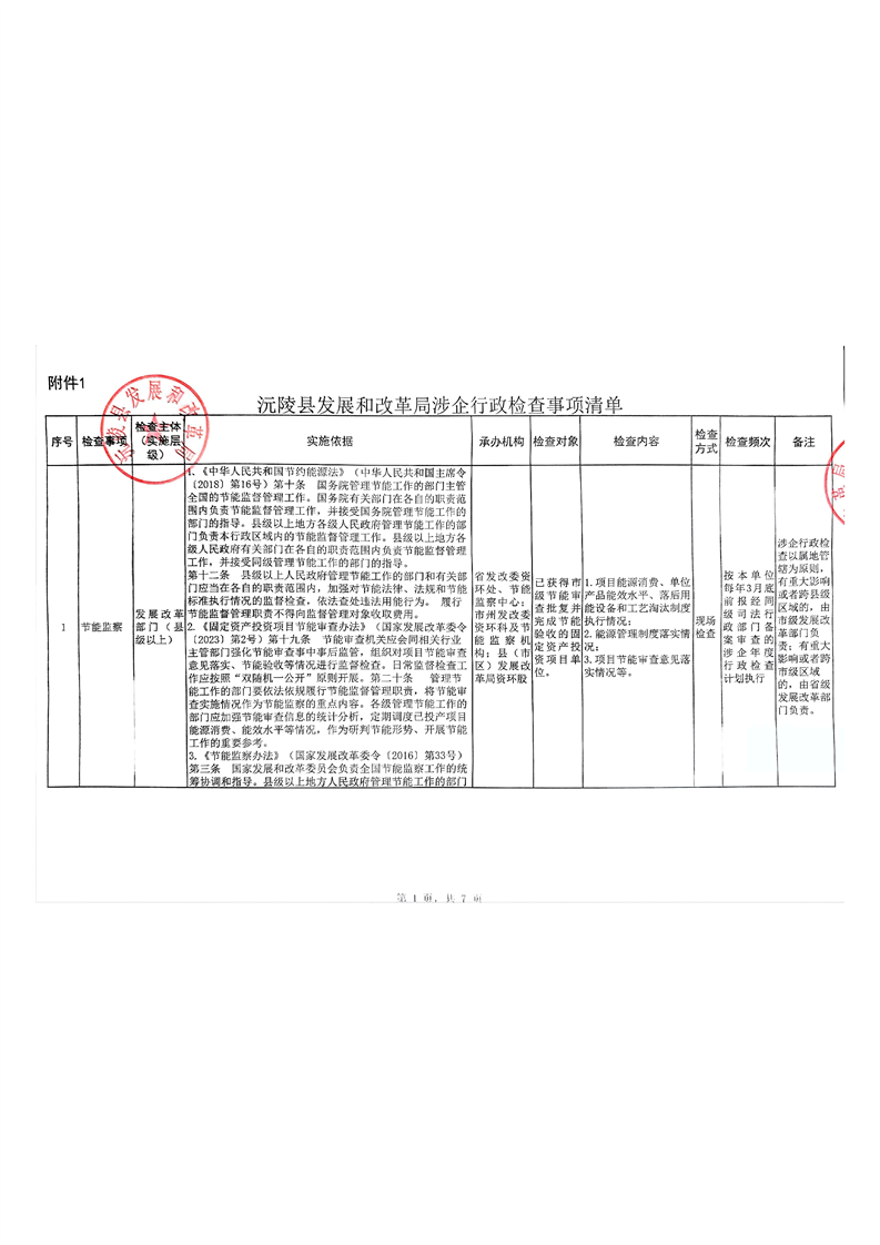 沅陵县发展和改革局涉企行政检查事项目录清单
