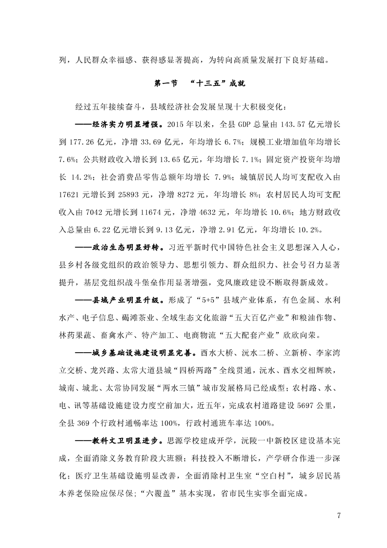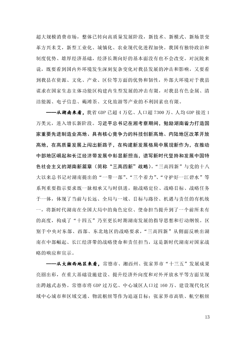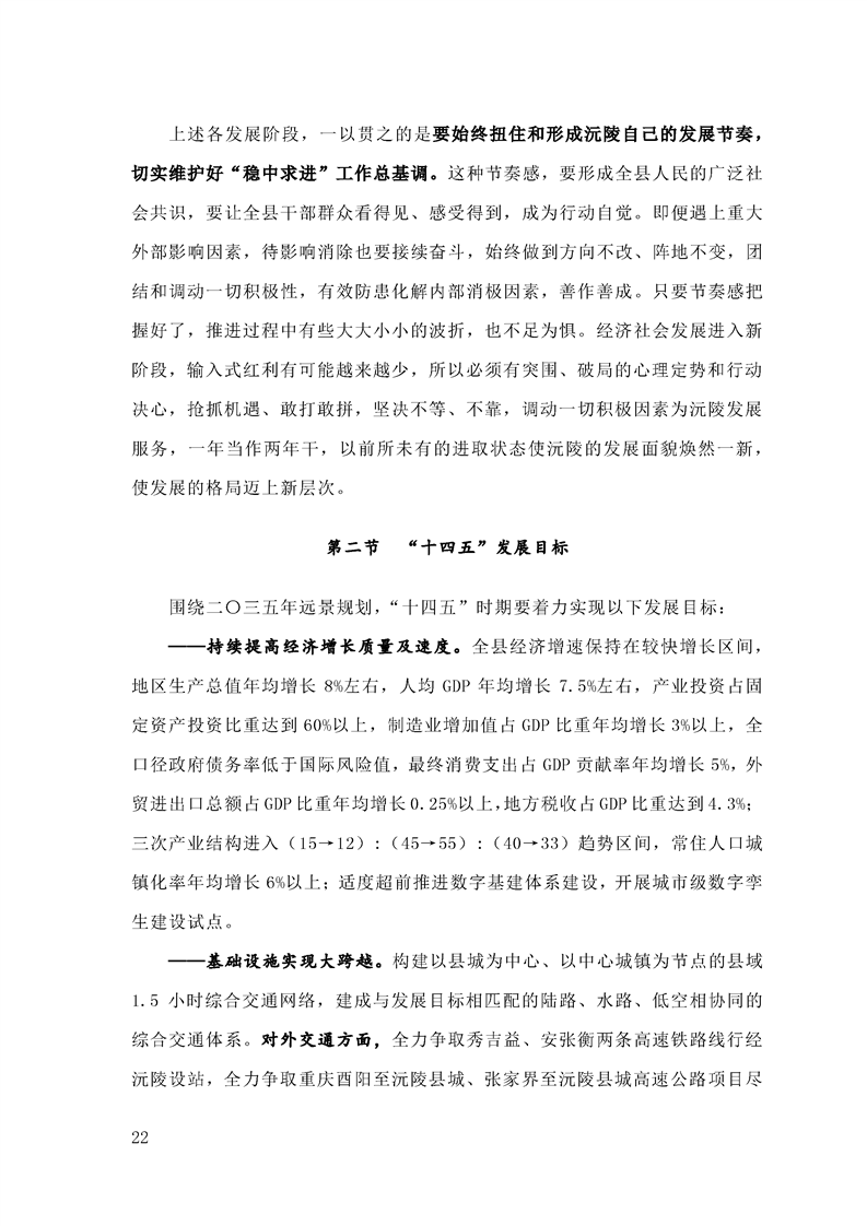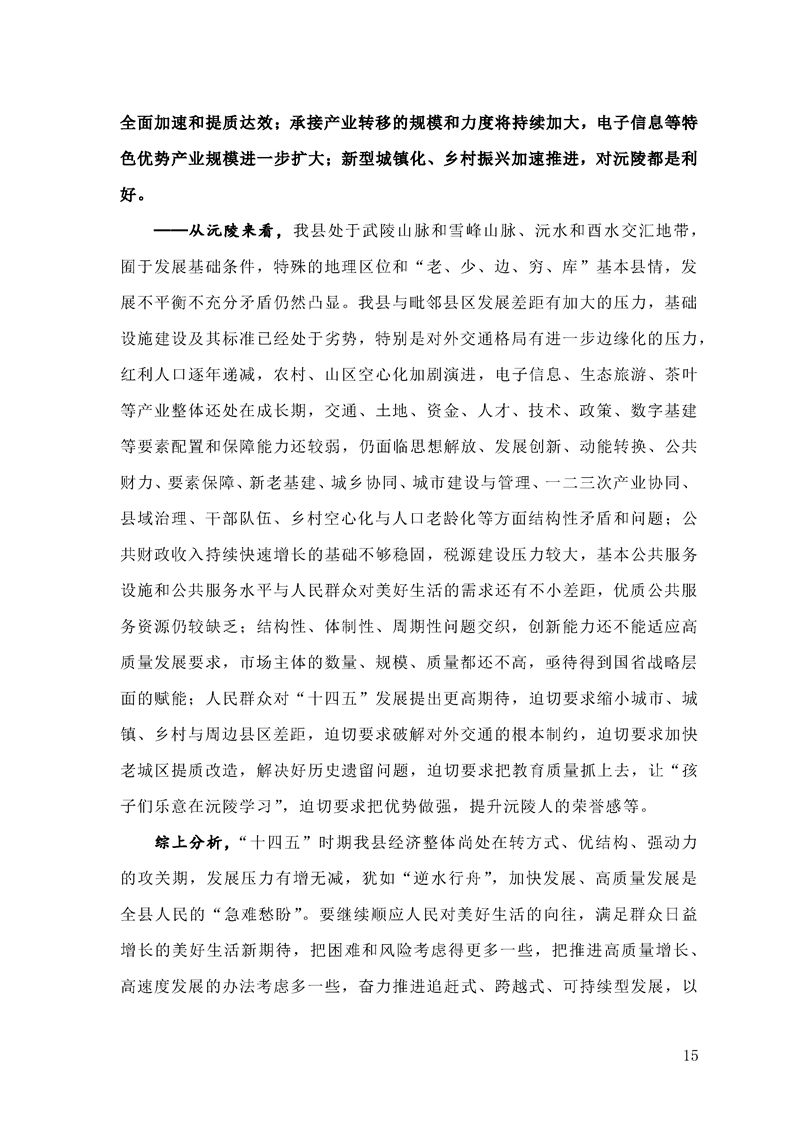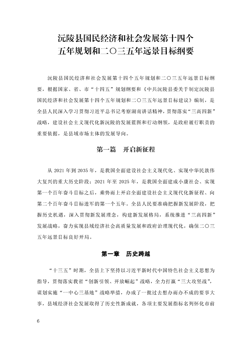 沅陵县国民经济和社会发展第十四个五年规划和二〇三五年远景目标纲要