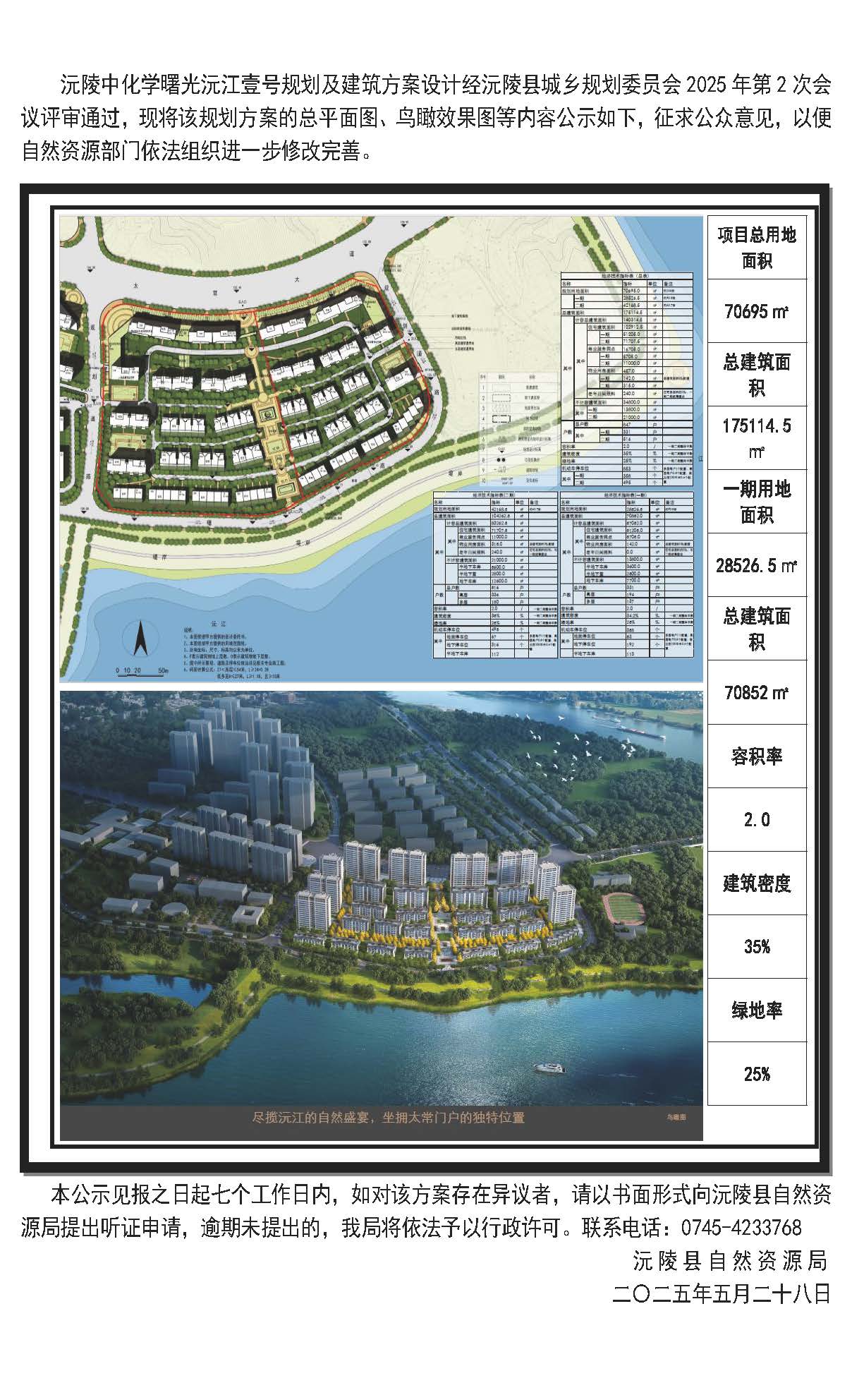 沅陵中化学曙光沅江壹号规划及建筑方案设计批前公示