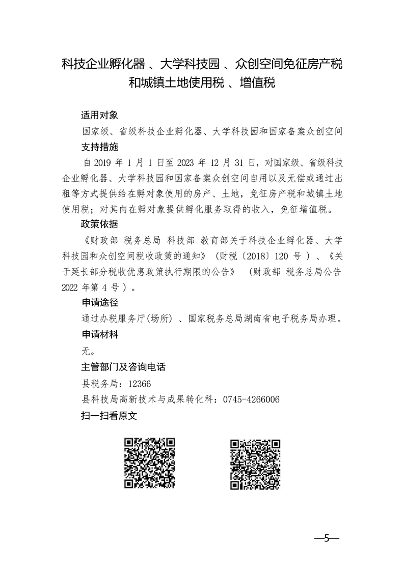 科技企业孵化器、大学科技园、众创空间免征房产税和城镇土地使用税、增值税