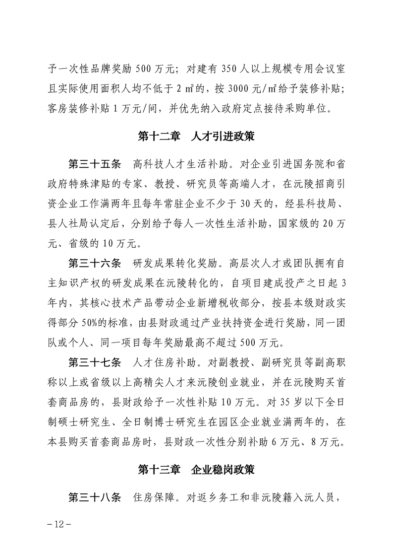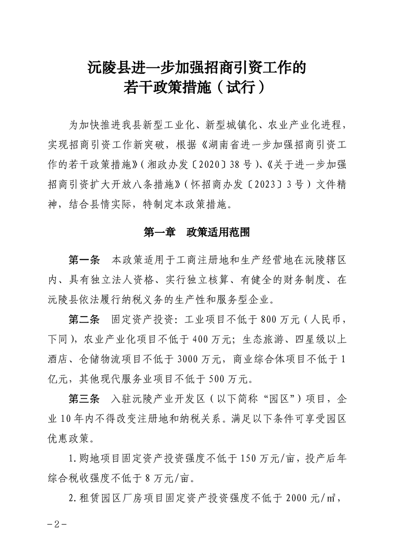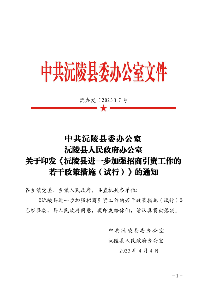 中共沅陵县委办公室沅陵县人民政府办公室关于印发《沅陵县大力推进招商引资工作的若干政策措施(试行)》的通知