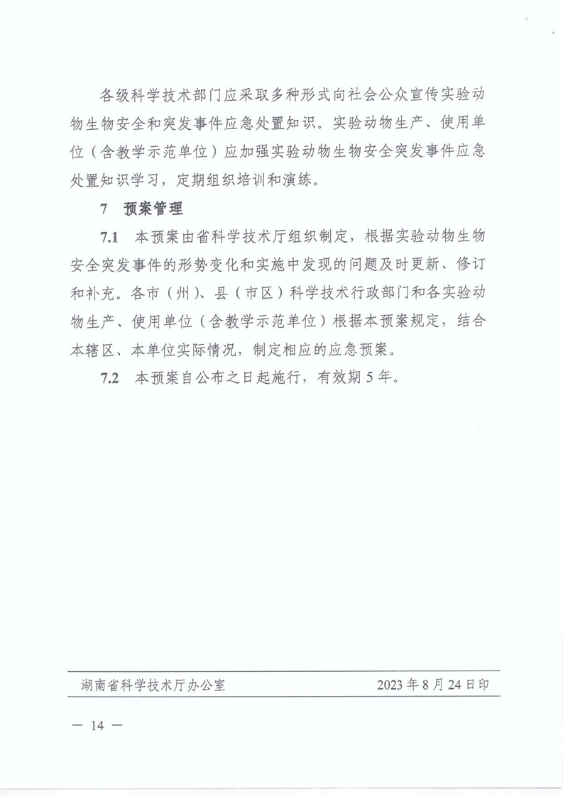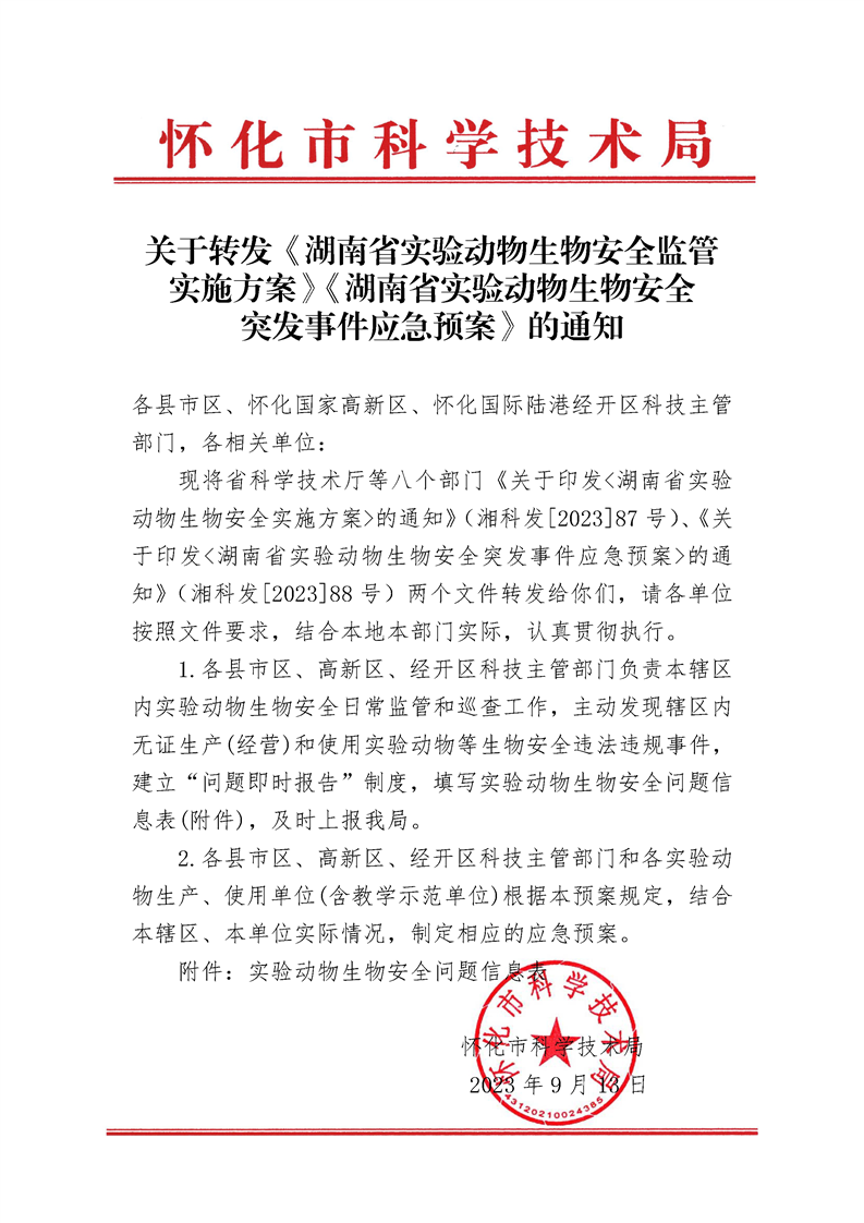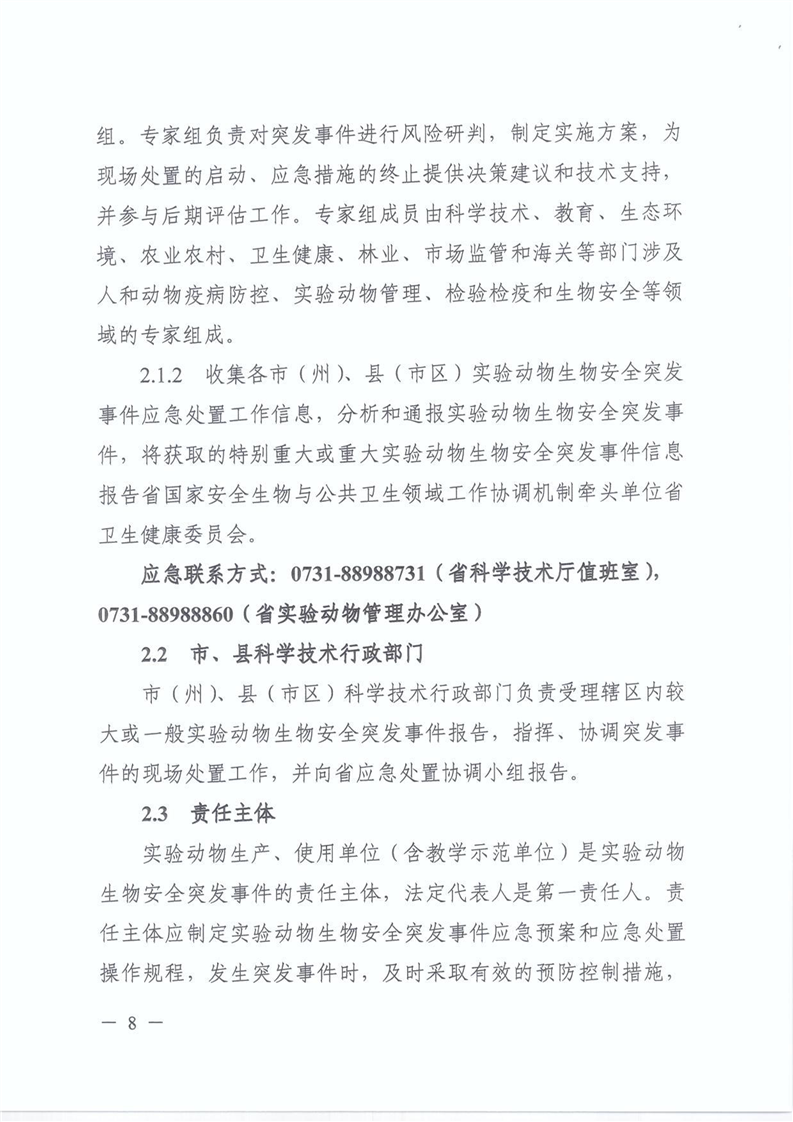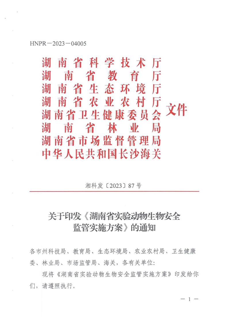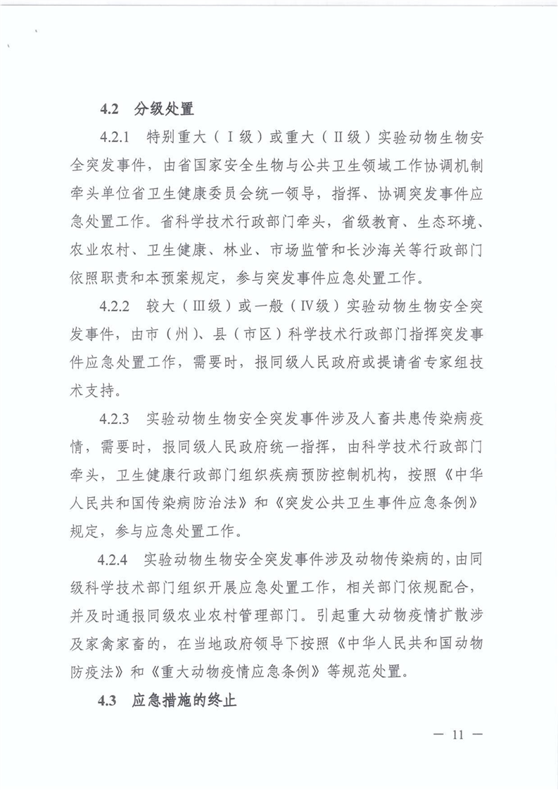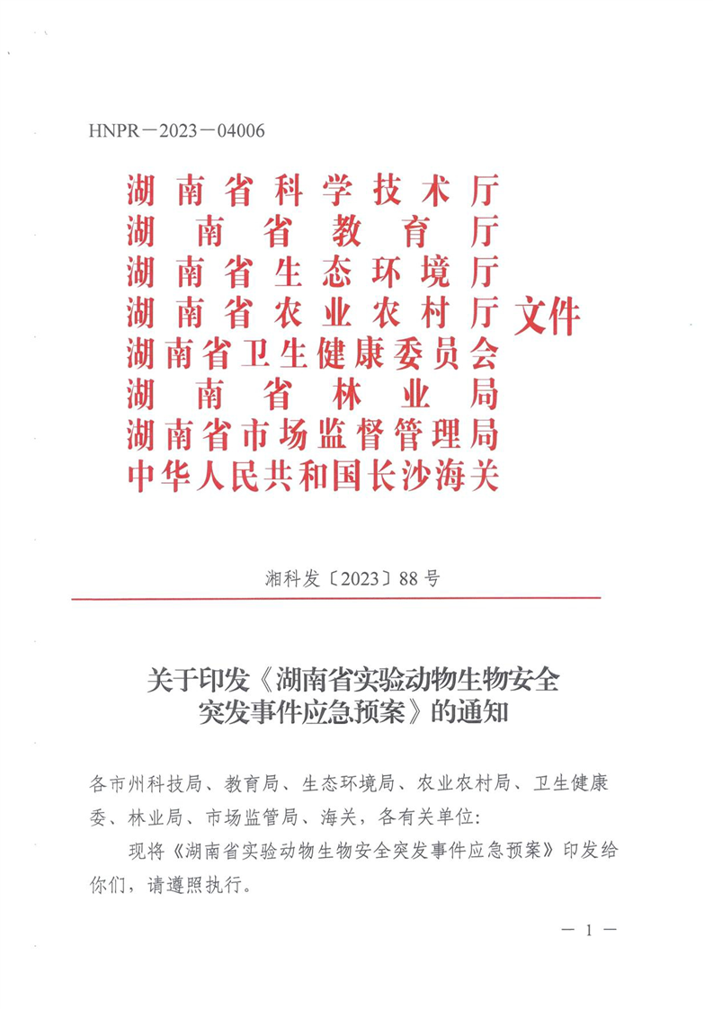 关于转发《湖南省实验动物生物安全监管实施方案》《湖南省实验动物生物安全突发事件应急预案》的通知.pdf