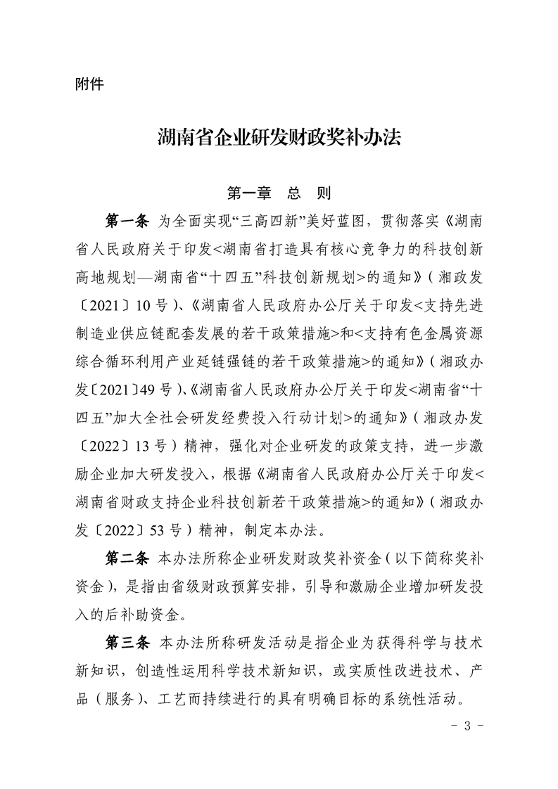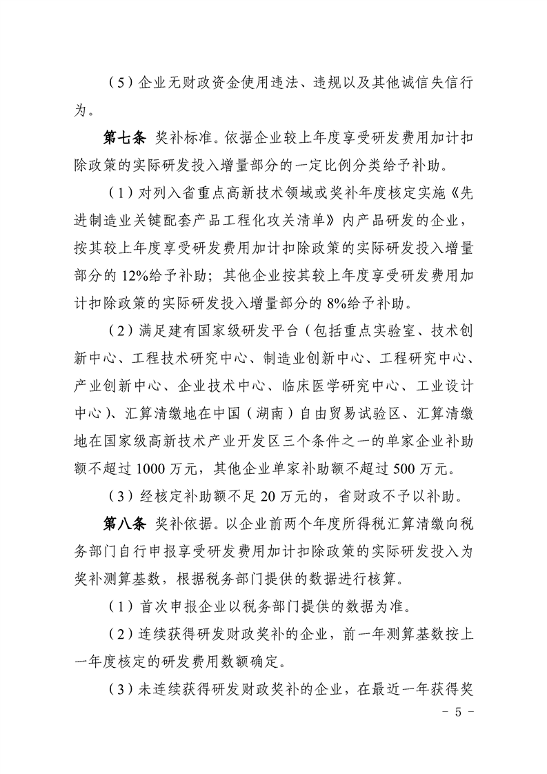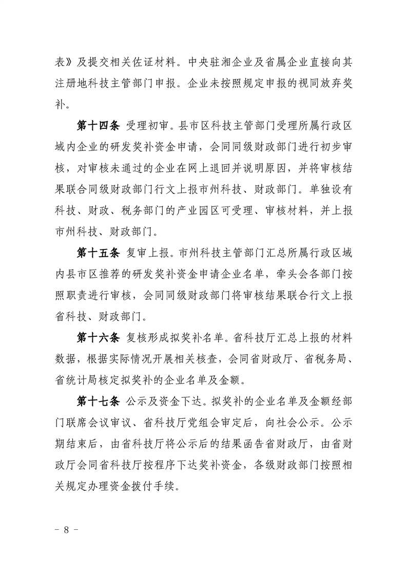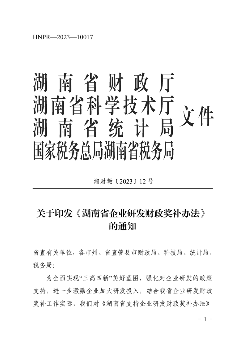 关于印发《湖南省企业研发财政奖补办法》的通知