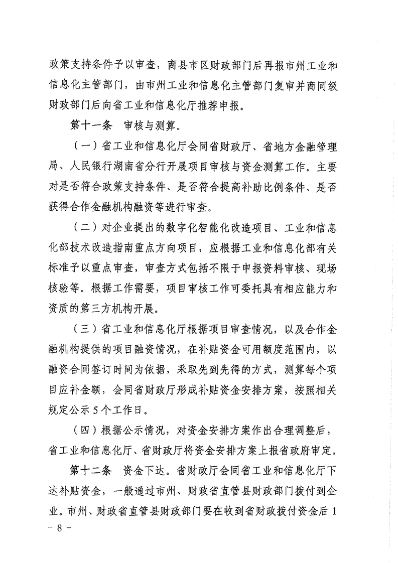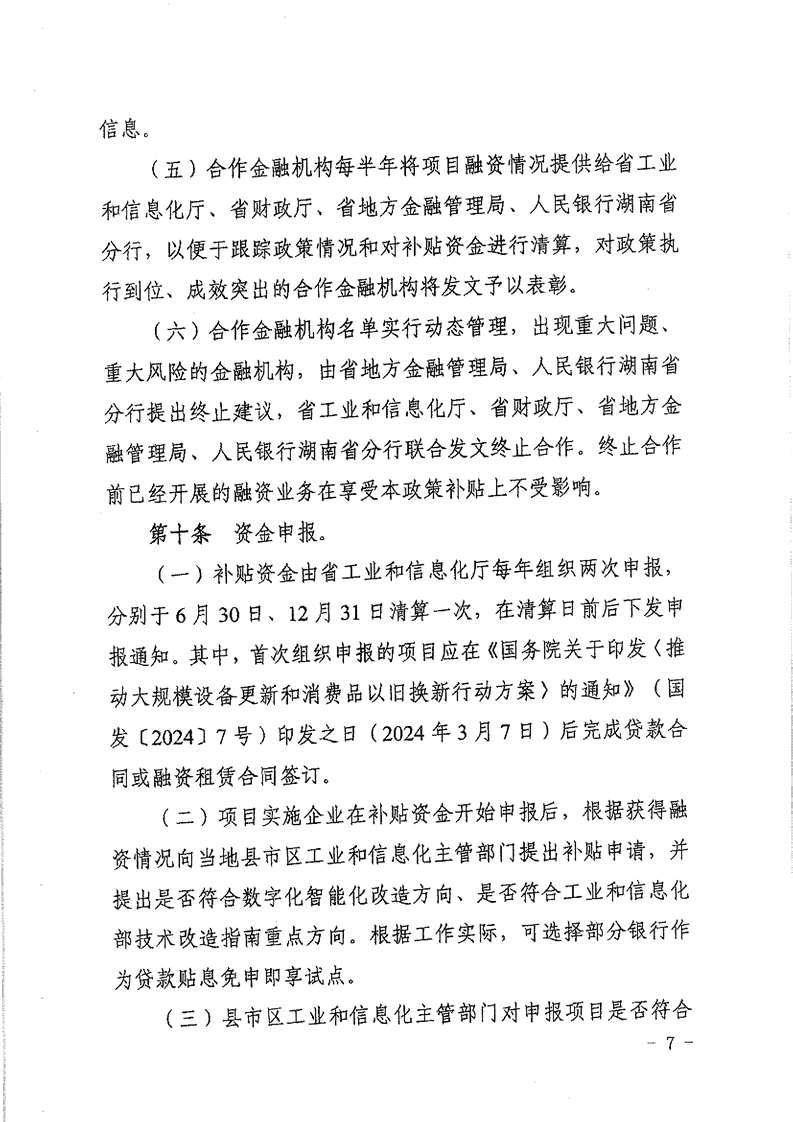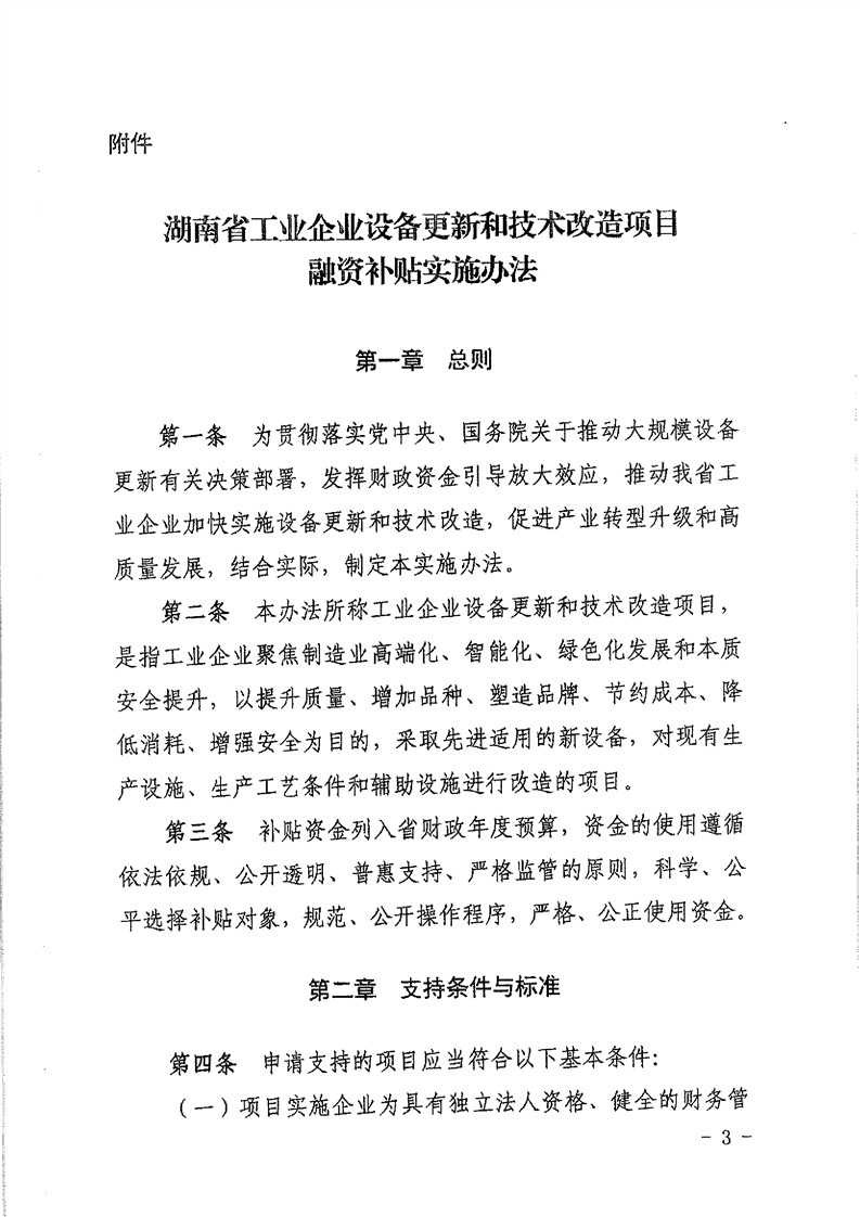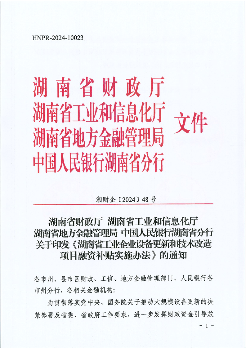 关于印发《湖南省工业企业设备更新和技术改造项目融资补贴实施办法》的通知