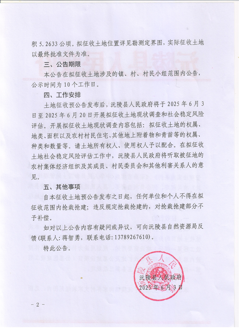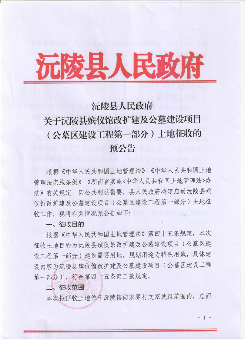 沅陵县人民政府关于沅陵县殡仪馆改扩建及公墓建设项目(公墓区建设工程第一部分)土地征收的预公告