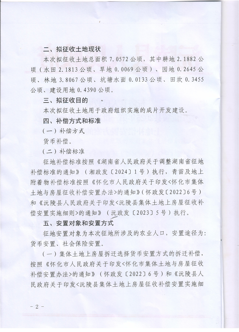 沅陵县人民政府关于沅陵县2025年第一批次建设用地拟征收土地补偿安置方案公告