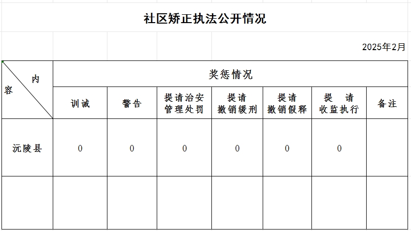 沅陵县2025年2月社区矫正执法公开情况