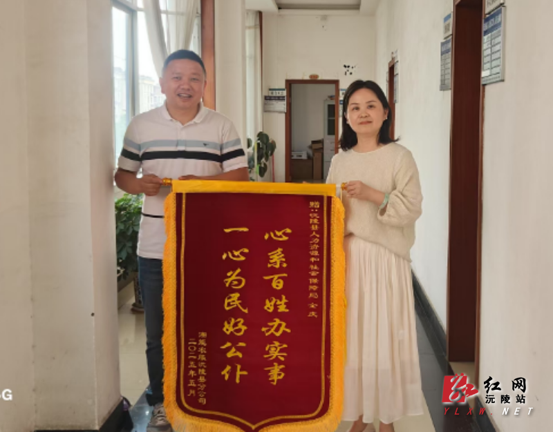 6月4日,湘能农服沅陵县分公司相关负责人专程来到沅陵县人社局,把一面写有“心系百姓办实事 一心为民好公仆”的锦旗送到该局相关部门工作人员手中,向他们表示诚挚的谢意。