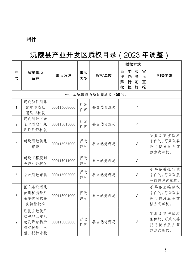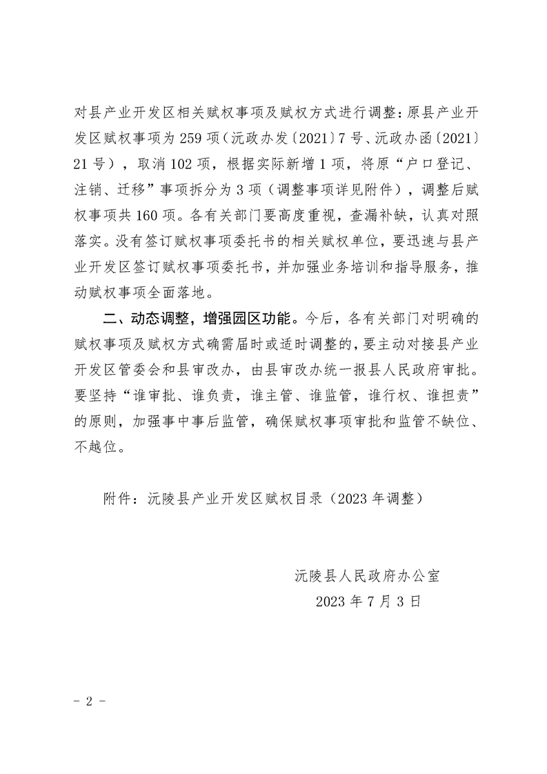 沅陵县人民政府办公室关于动态调整沅陵县产业开发区赋权目录的通知