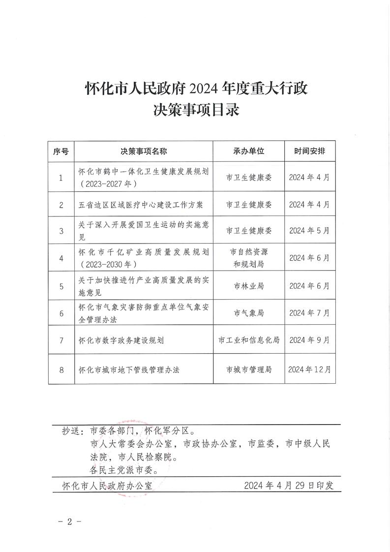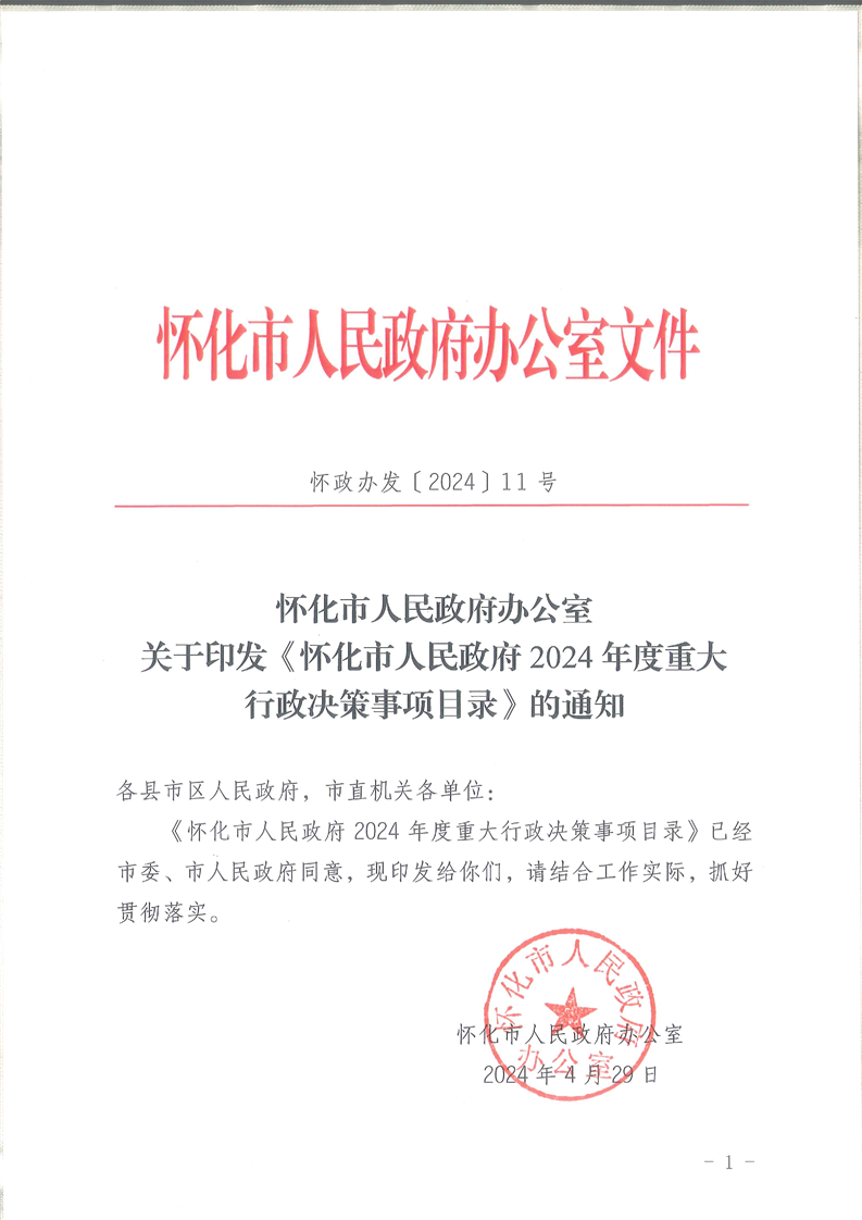 怀化市人民政府办公室关于印发《怀化市人民政府2024年度重大行政决策事项目录》的通知
