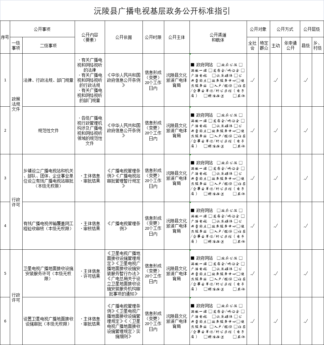沅陵县广播电视基层政务公开标准目录(2022年版)