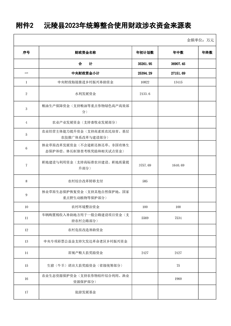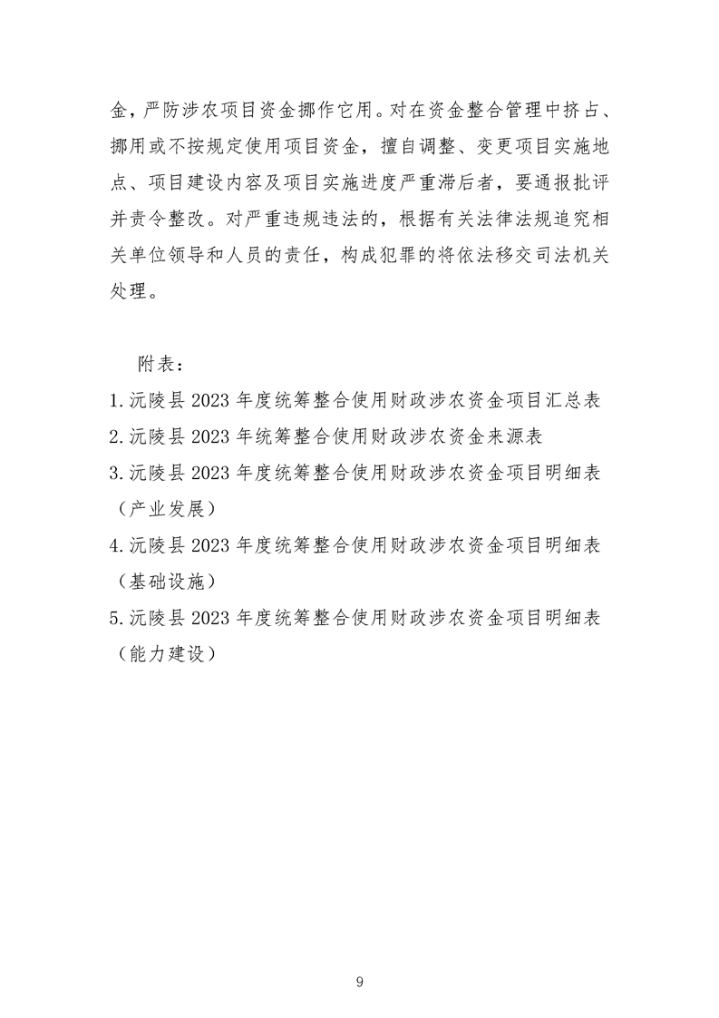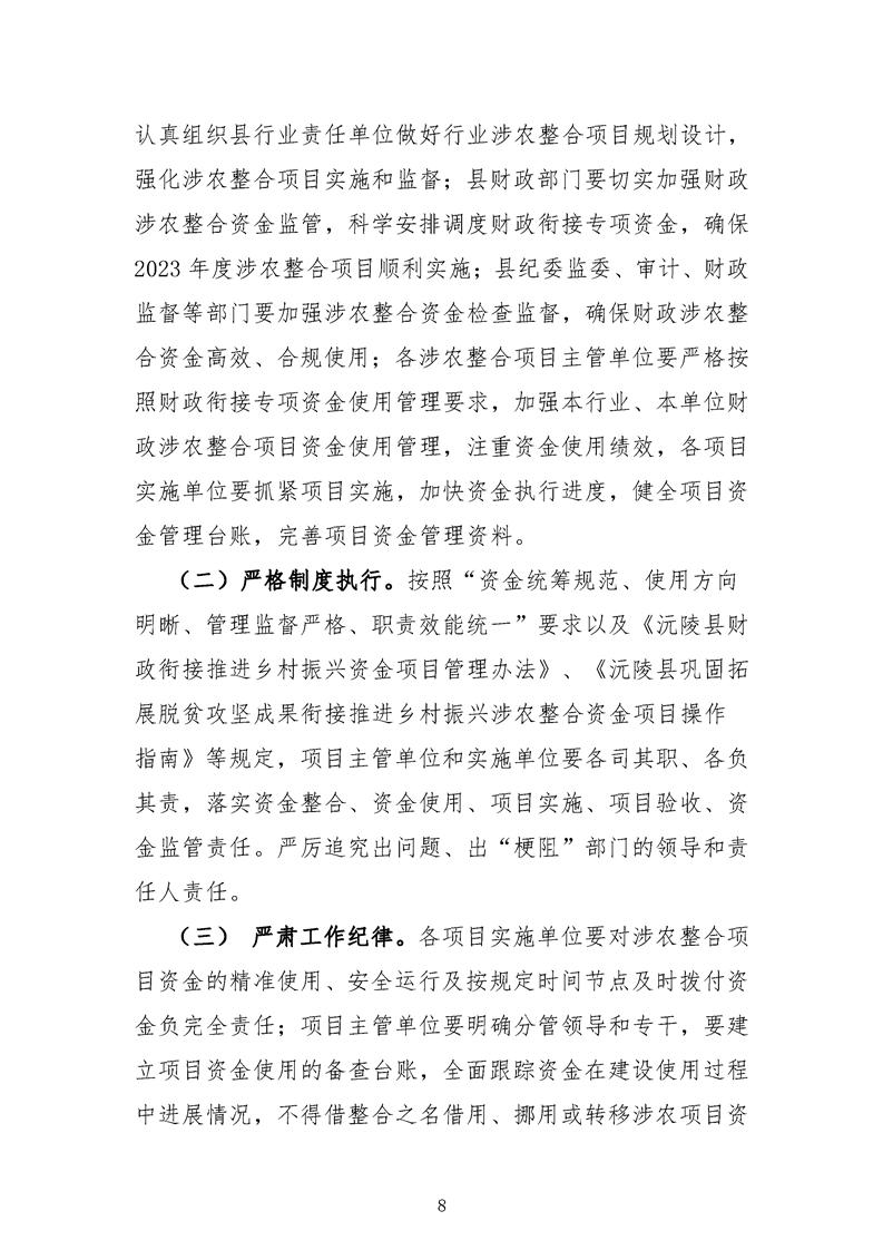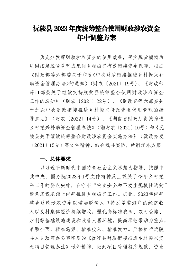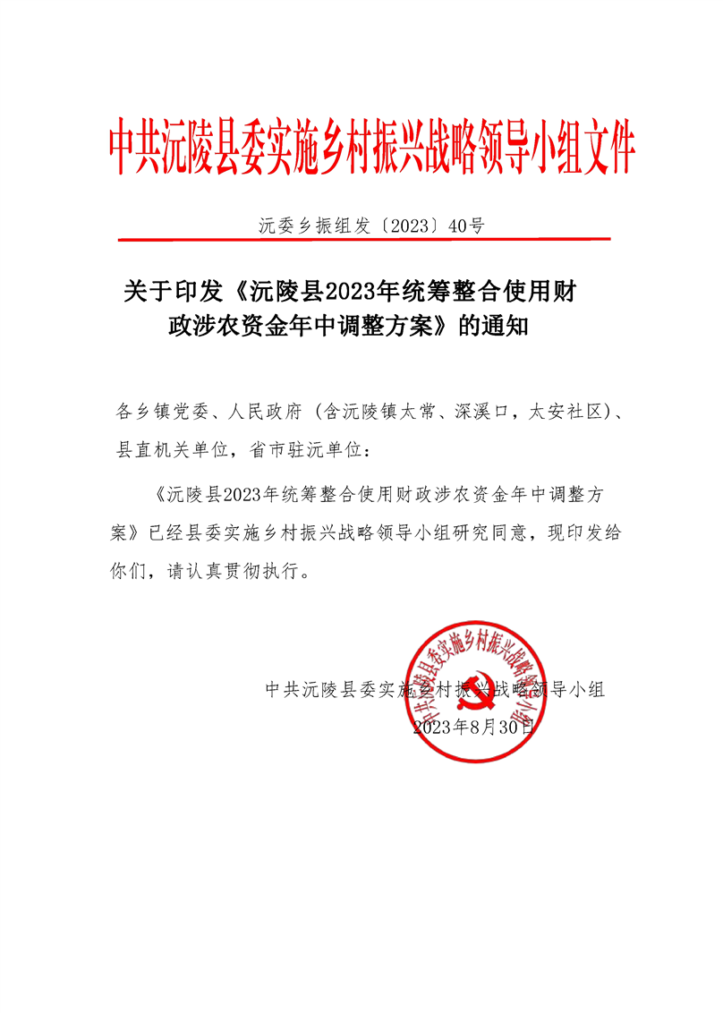 关于印发《沅陵县2023年统筹整合使用财政涉农资金年中调整方案》的通知