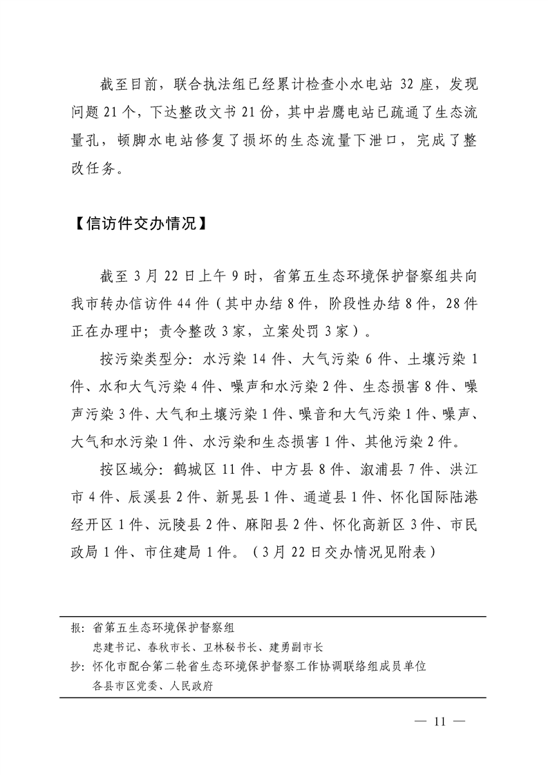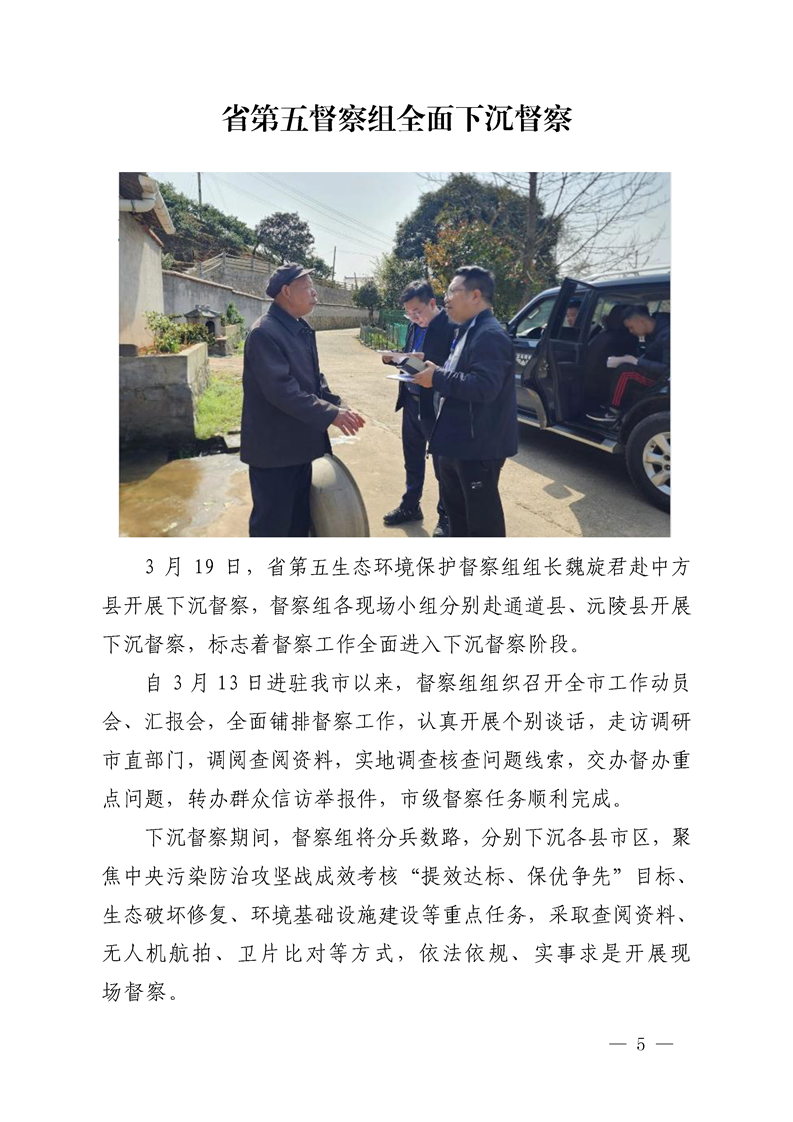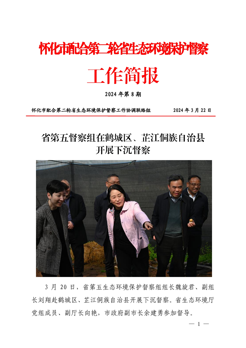 省第五督察组在鹤城区、芷江侗族自治县开展下沉督察(怀化市配合第二轮省生态环境保护督察工作简报 2024年第8期)