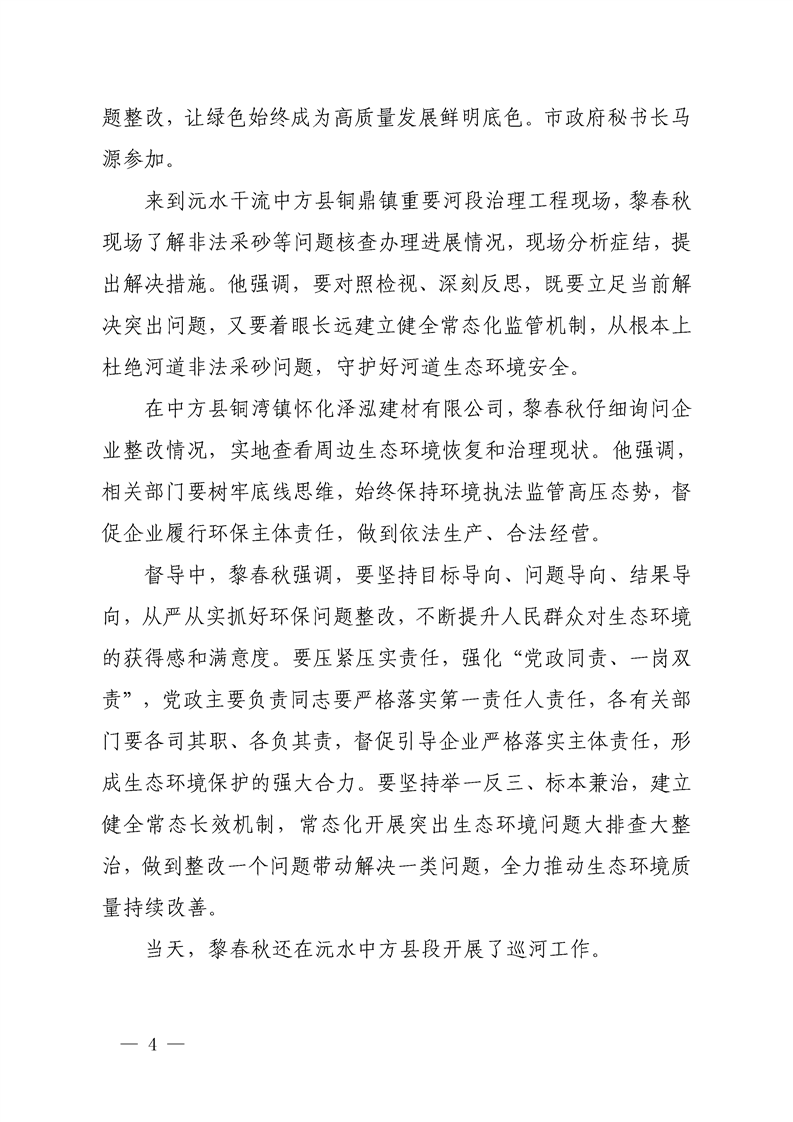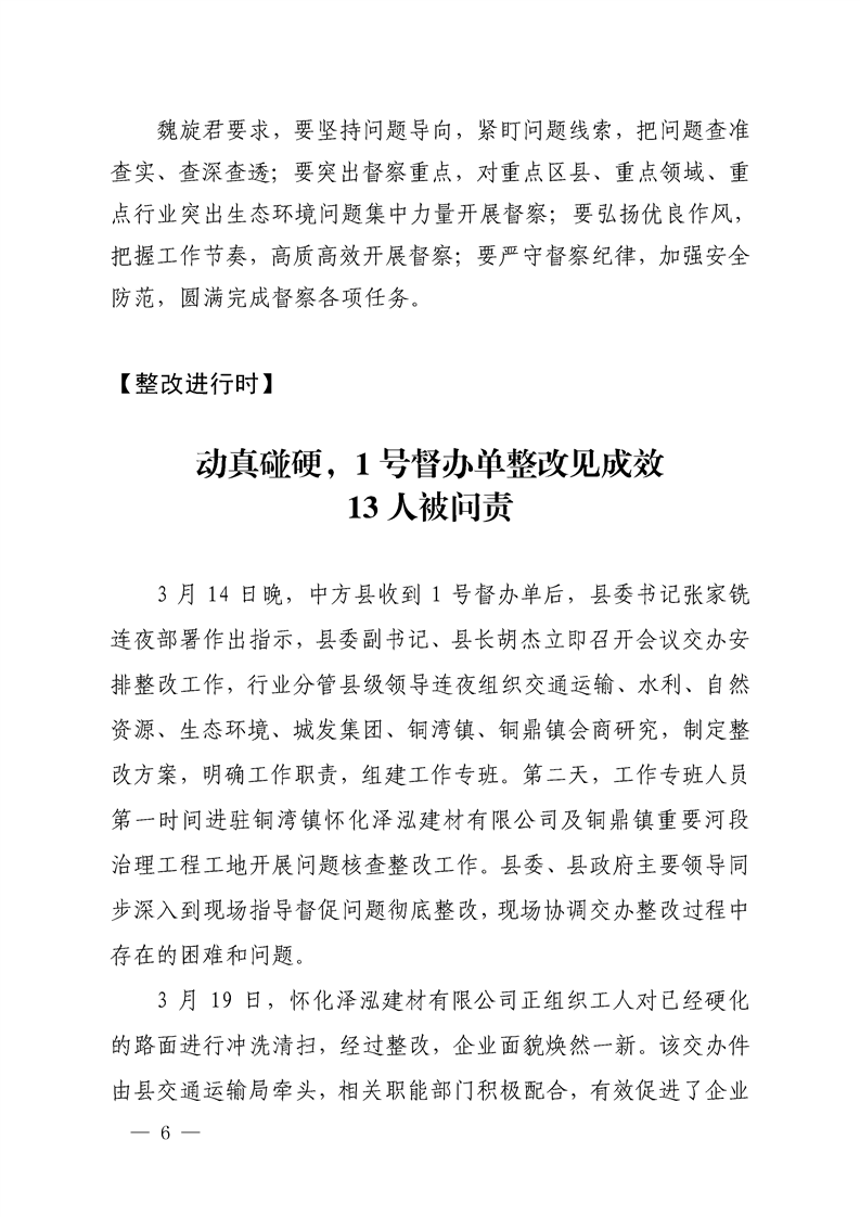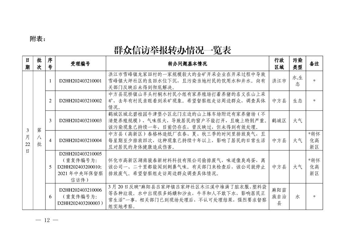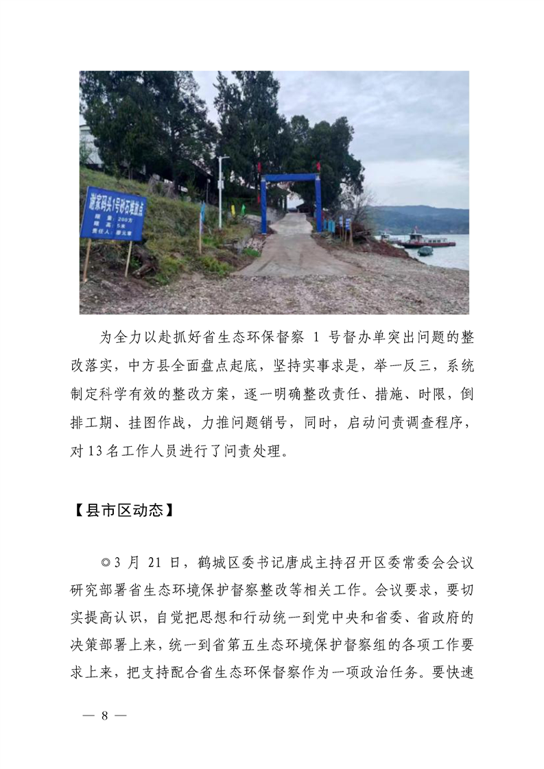 省第五督察组在鹤城区、芷江侗族自治县开展下沉督察(怀化市配合第二轮省生态环境保护督察工作简报 2024年第8期)