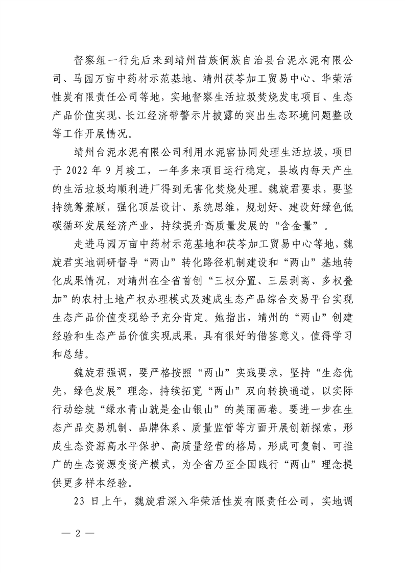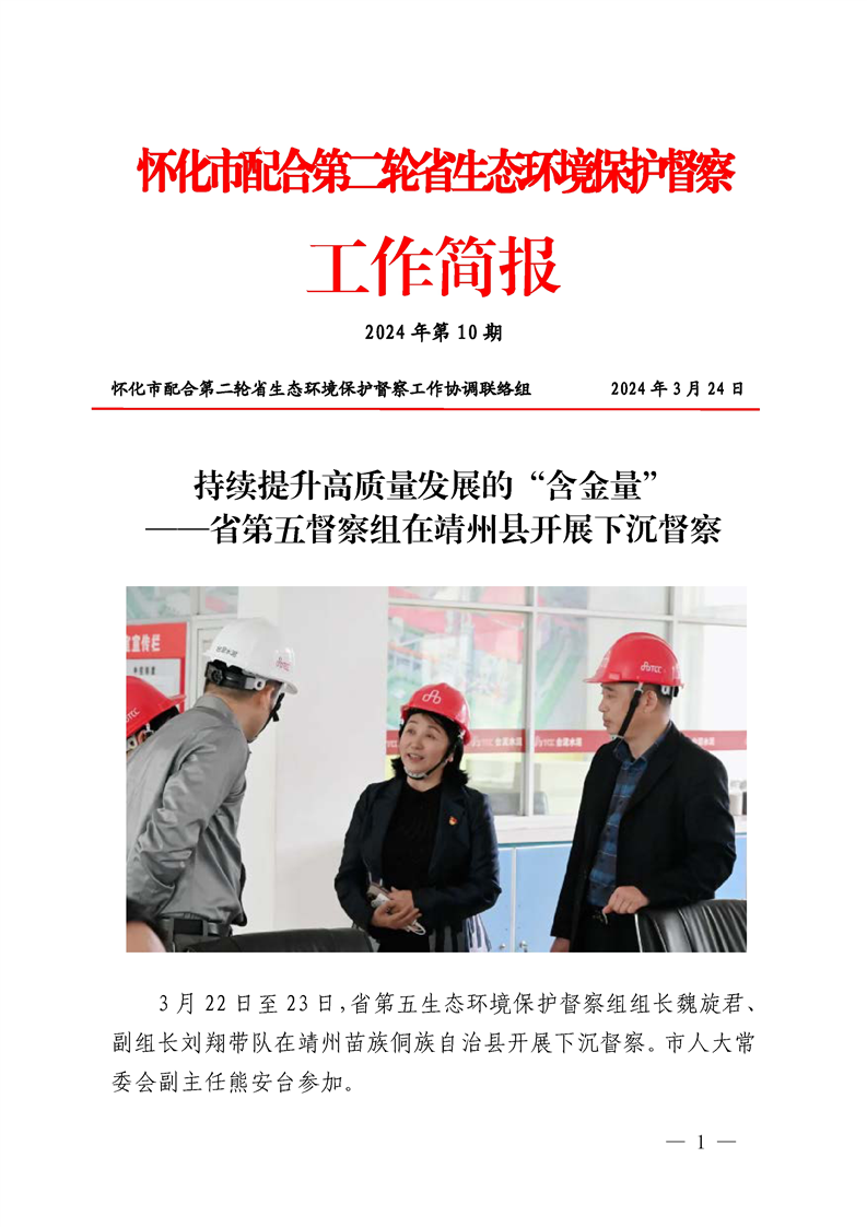 持续提升高质量发展的“含金量”--省第五督察组在靖州县开展下沉督察(怀化市配合第二轮省生态环境保护督察工作简报 2024年第十期)