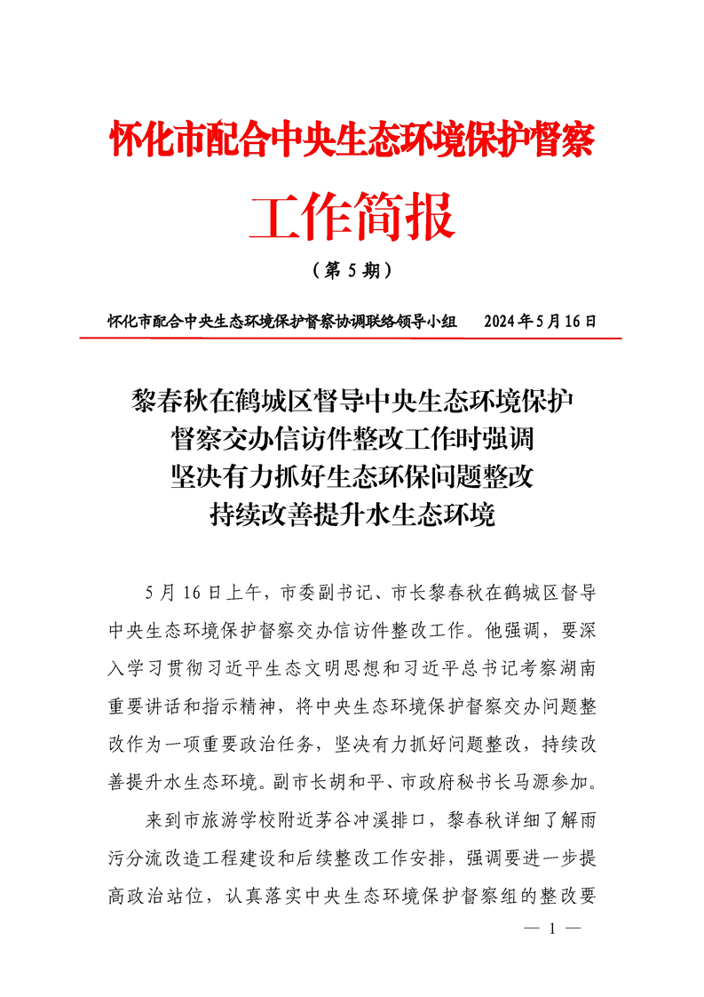 怀化市配合中央生态环境保护督察工作简报(第5期)