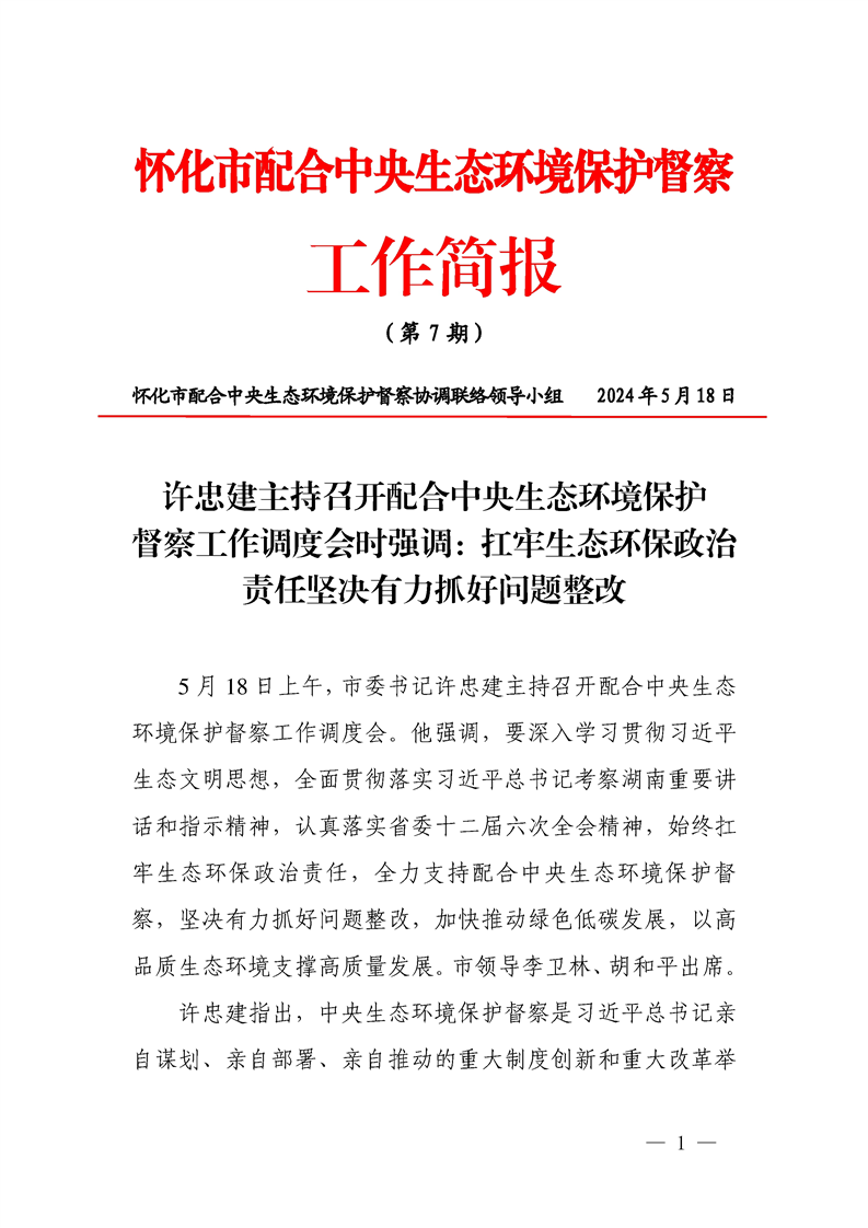 怀化市配合中央生态环境保护督察工作简报(第7期)