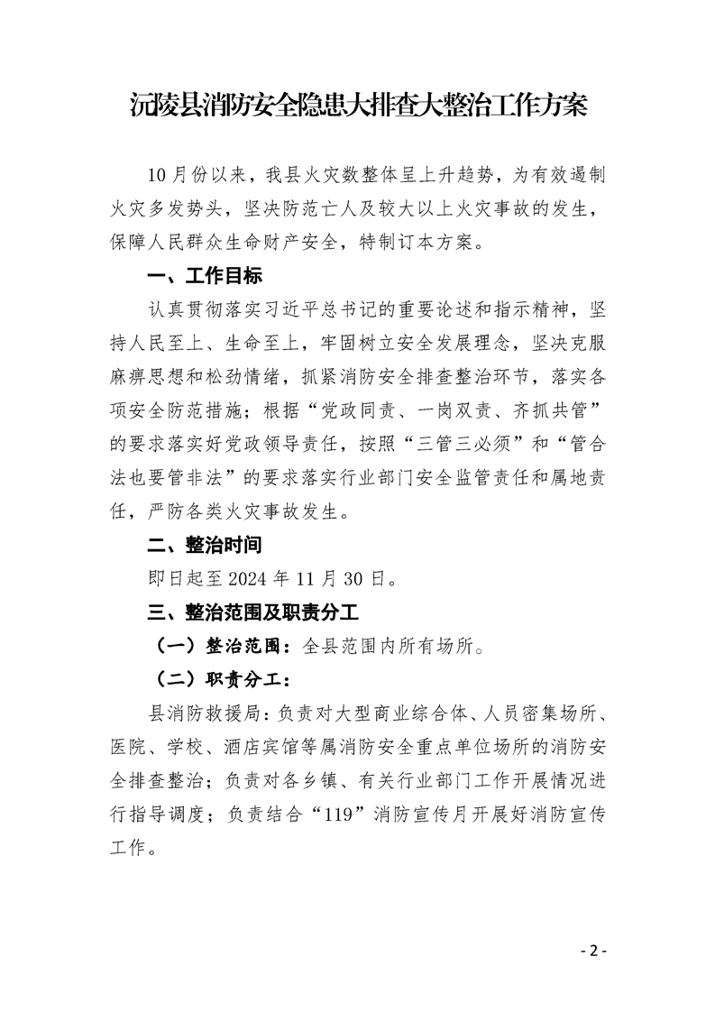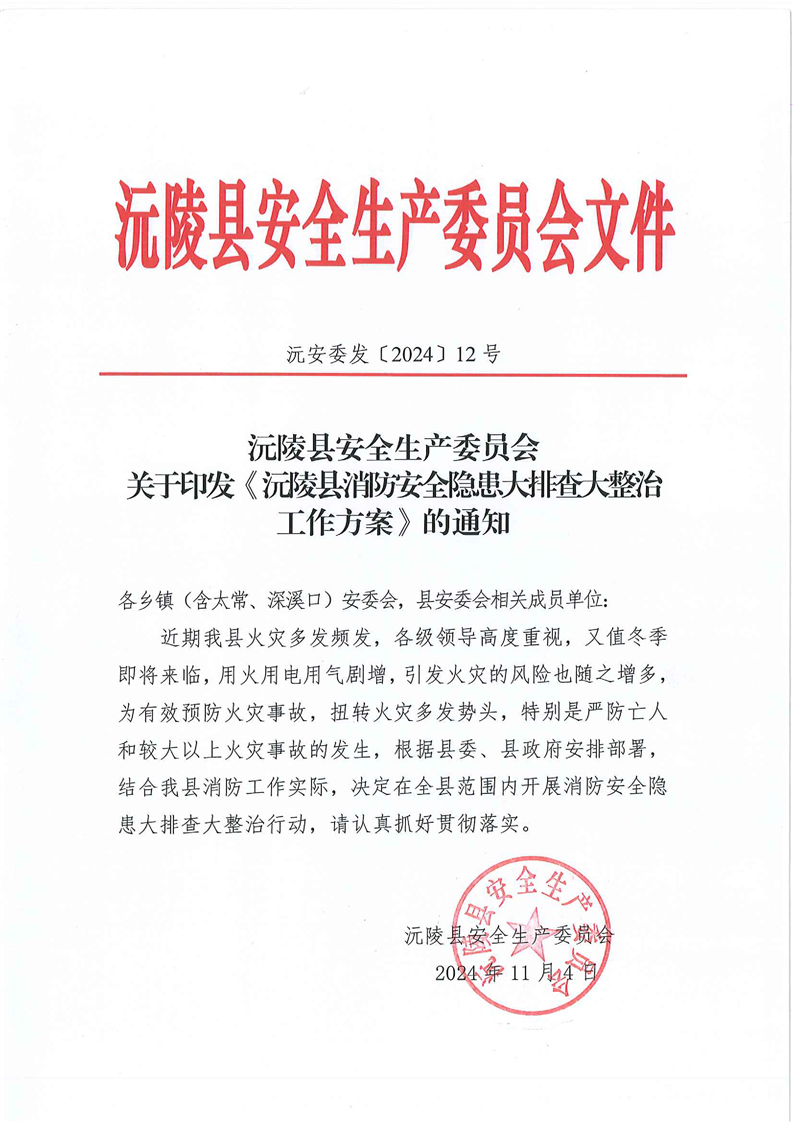 关于印发《沅陵县消防安全隐患大排查大整治工作方案》的通知