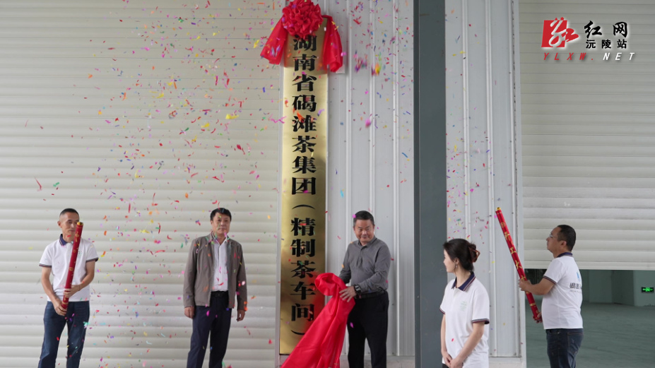 在揭牌环节,湖南潇湘茶业有限公司董事长陈德湖与辰发控股集团有限公司董事长沈年军共同为“大宗茶合作加工中心初制车间”揭牌;湖南湘茶集团总经理王树波与辰发控股集团有限公司总经理全科共同为“大宗茶合作加工中心精制车间”揭牌。